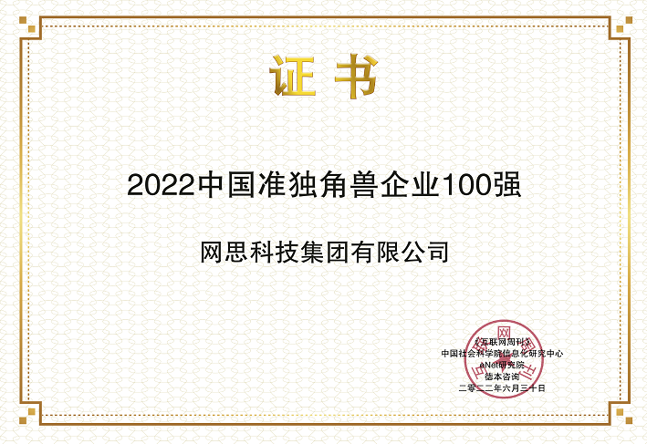 网思科技入选中科院2022中国准独角兽企业100强,名列第28位